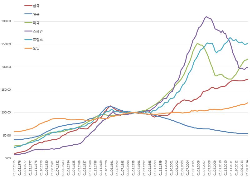 (그림: 예전에 올렸던 각국 부동산 가격 추세 그래프)
