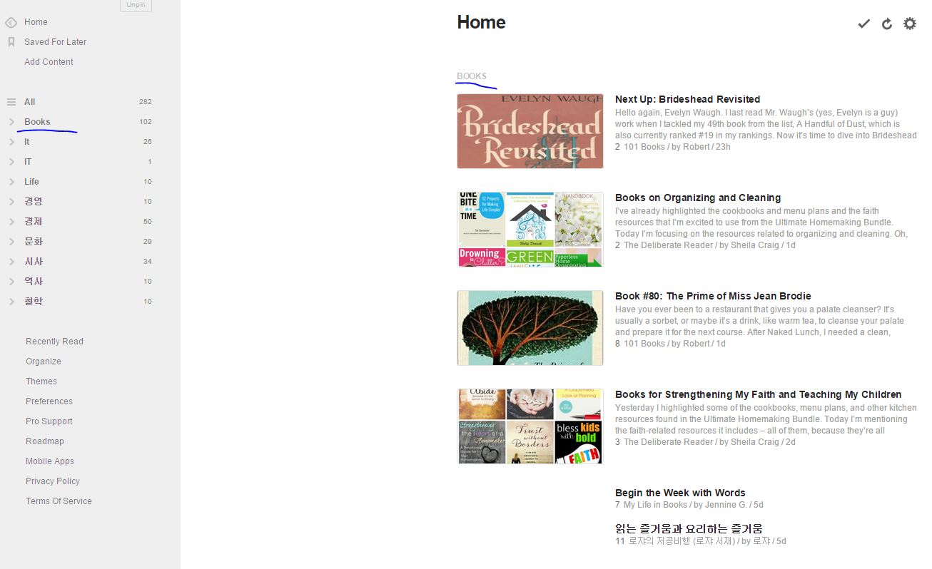 Feed된 글들을 제목만 이렇게 볼 수도 있고,
